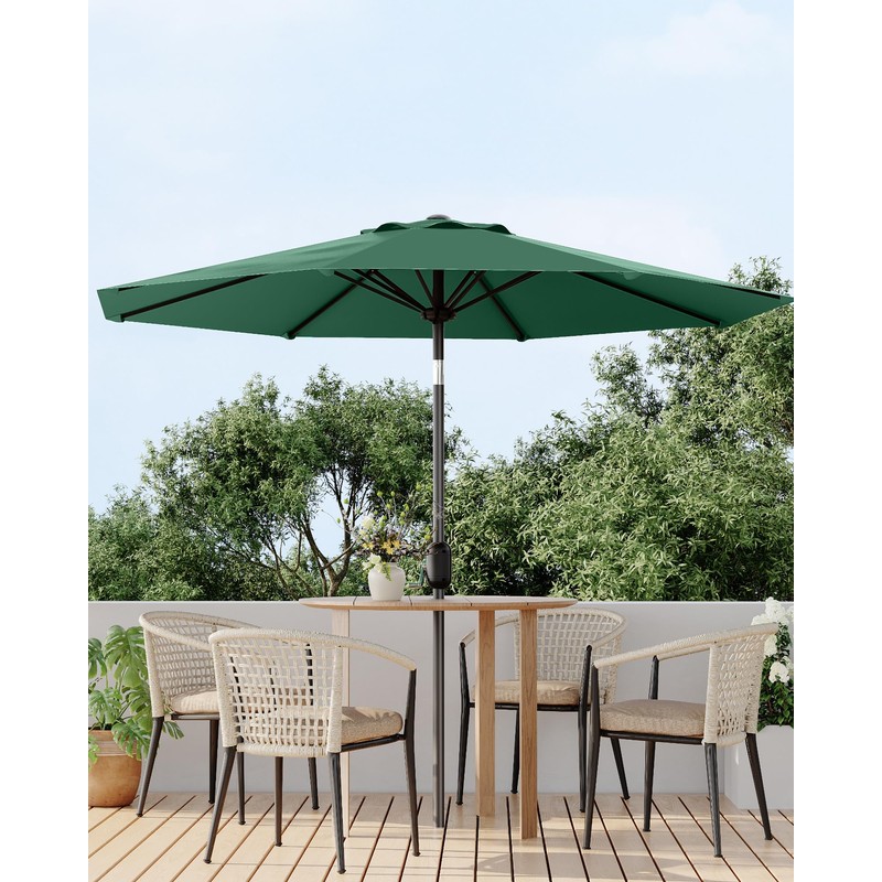 10FT Outdoor Patio Umbrella,Table Market Umbrella with Push Button Tilt and Crank, 8 Sturdy Ribs UV Protection Waterproof for Garden, Deck, Backyard, Pool (Dark Green)