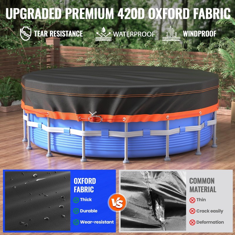 10Ft Round Pool Cover,Solar Covers for Above Ground Pools,Waterproof and Dustproof Swimming Pool Cover,Oxford Fabric Pool Covers for Above Ground Pools with Winch and Cable
