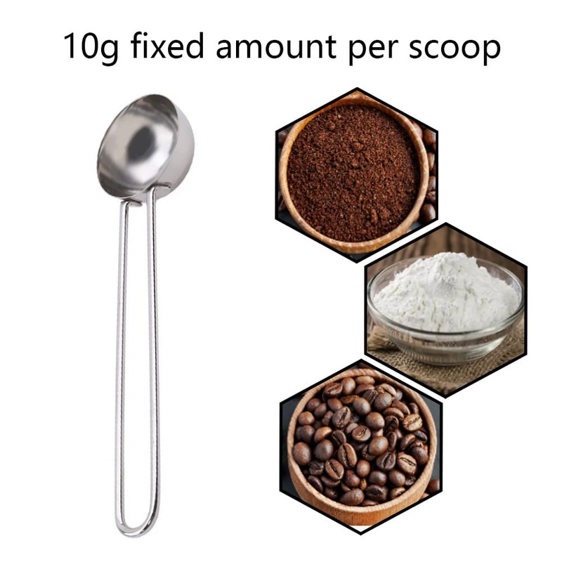 - Package Contents : You will receive a silver long-handled coffee measuring spoons with a fixed capacity of 10 grams per scoop