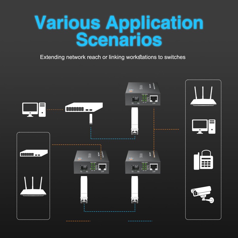 - Versatile Media Compatibility – Compatible with both twisted pair and optical fiber, making the Fiber Media Converter ideal for diverse network environments.