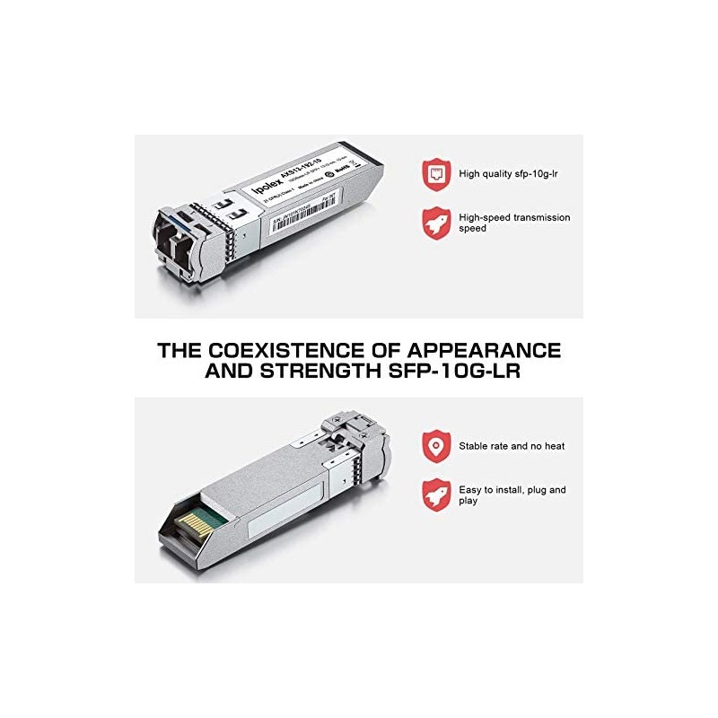 - Plug and play, hot pluggable SFP+ MSA compliant, compliant with IEEE 802.3ae.