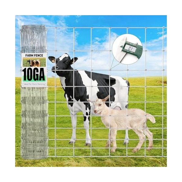10GA Thickened Heavy Duty Cattle Farm Fence, 4ftx100ft, Cattle Panels for Garden Trellis Fixed-Knot Woven Galvanized High Tensile Wire Fencing, Durable Goat Fence, Ideal for Farm and Field Protection