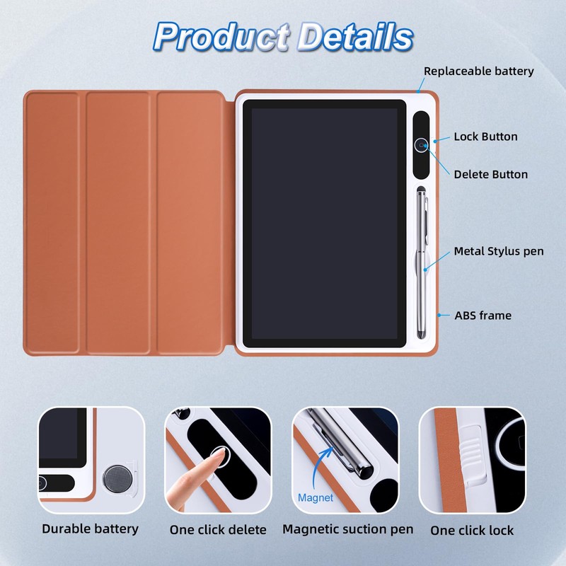 10inch LCD Writing Tablet with PU Protective Cover Electronic Writing Notebook Erasable Drawing Board for Kids Adults at Home Office Work(Brown)