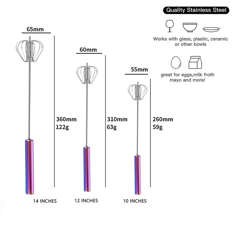 The Hand Push Egg Whisk is made of stainless steel so you don't have to worry about rusting over time, and professional-grade materials make this cooking tool a must-have tool for home chefs and restaurant chefs.
