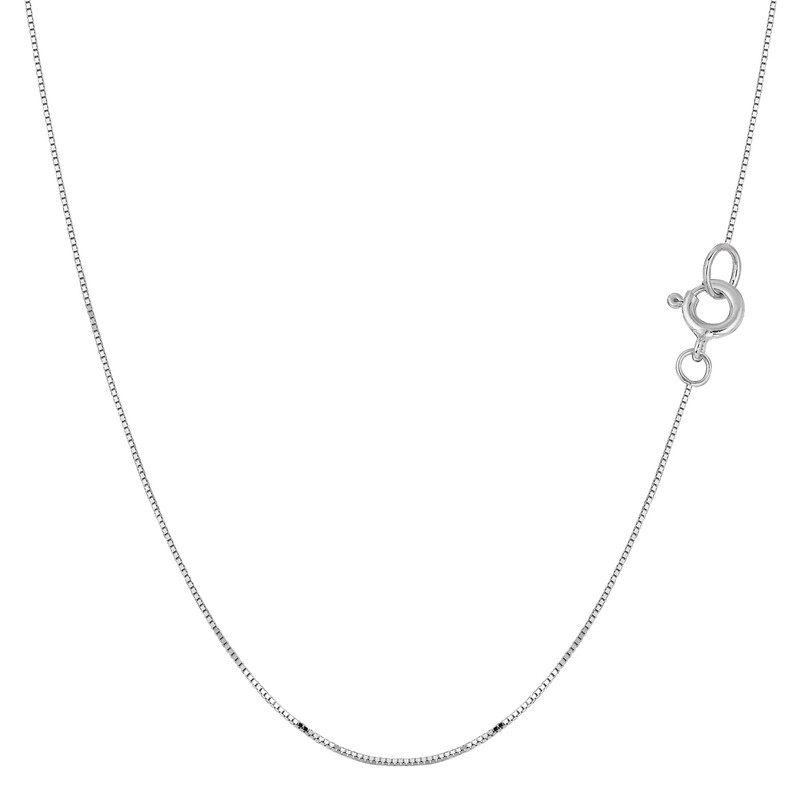 10k Solid Real Gold Mirror Box Chain Necklace, 0.45mm (20 Inches, White Gold)