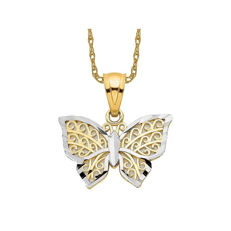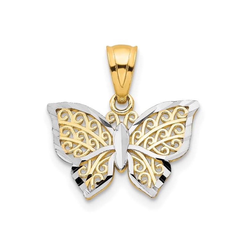 10K Solid Yellow Gold Butterfly Wings Necklace Chain Pendant Charm Only