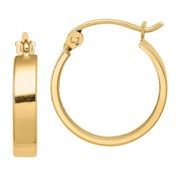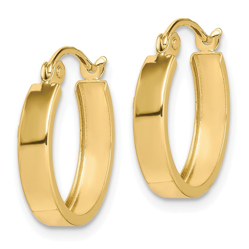 10K Solid Yellow Gold Square Tube Round Huggie Small Hoop Earrings