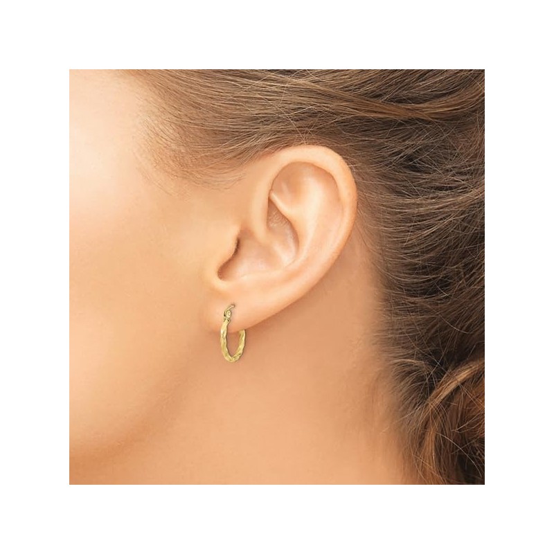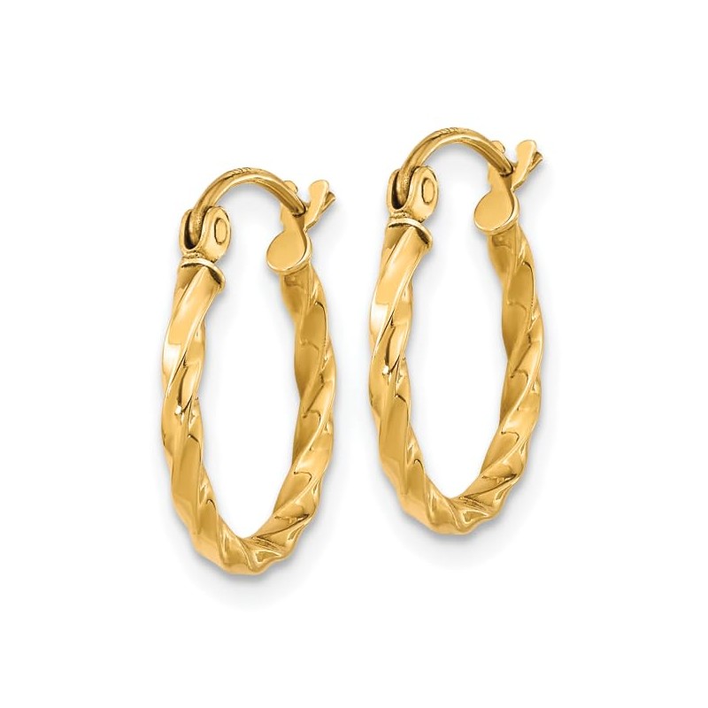 10K Solid Yellow Gold Twisted Round Small Hoop Earrings