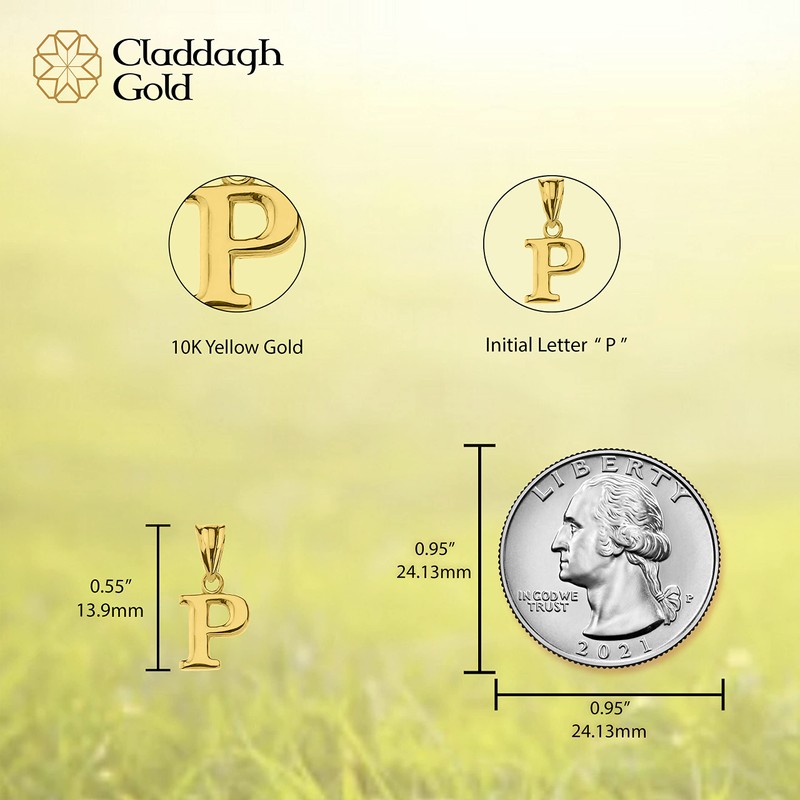 10K Yellow Gold Fine Mini Dangling Initial A-Z Charm 1/2" Pendant - Letter P