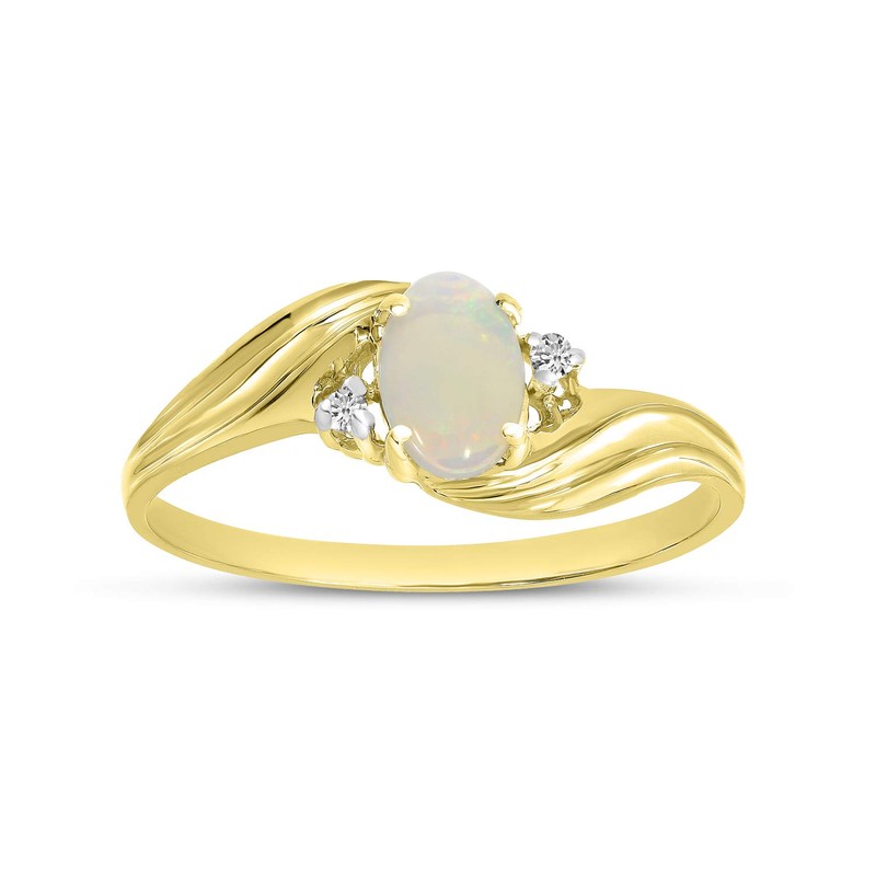 10k Yellow Gold Oval Opal And Diamond Ring (Size 7)