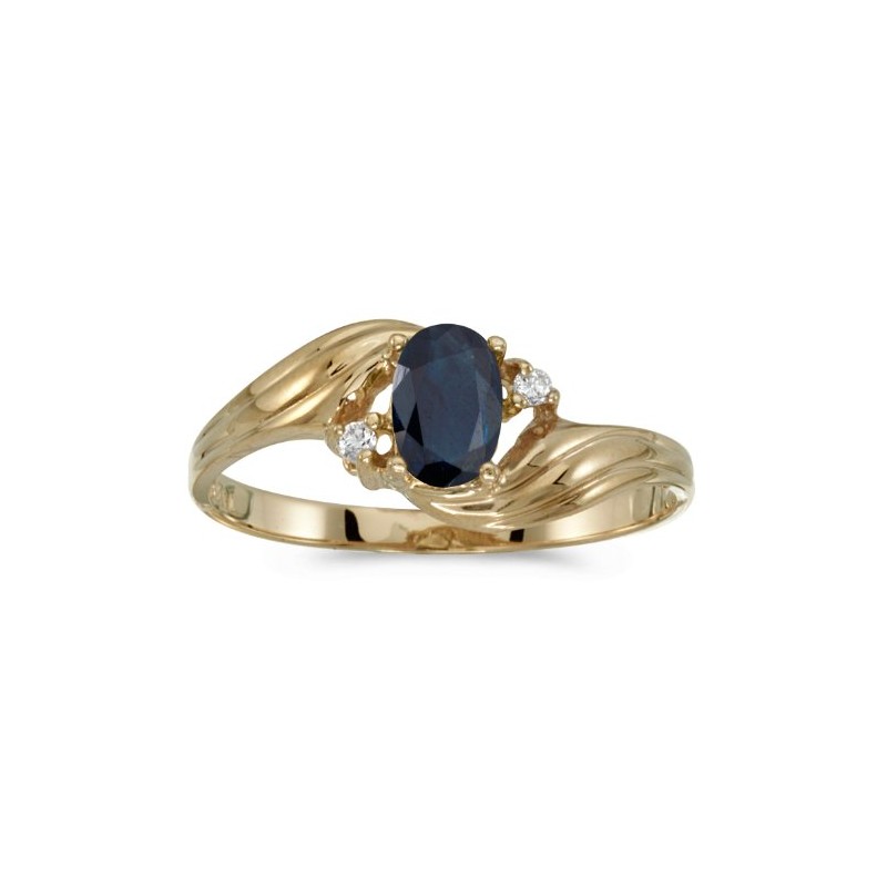 10k Yellow Gold Oval Sapphire And Diamond Ring (Size 10)