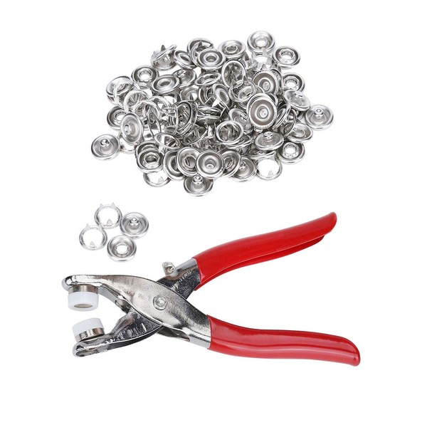 10L0L 3/8 Inch Open-Ring Cap Gripper Grip Prong Stainless Steel Snaps No-Sew Button Fasteners Studs, Fastener Pliers (Snaps Pliers and 100-piece Snaps)