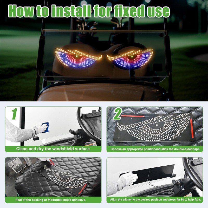 10L0L Golf Cart Devil Eyes Light Sign Universal Fit Windshield, Dynamic LED Display Screen Panel USB Powered