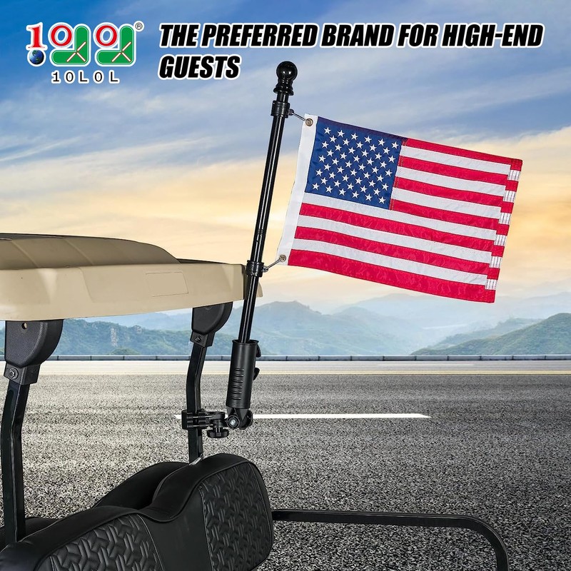 10L0L Golf Cart Flag Mount-Flag Holder Kit, 180 Degree Rotation Universal Compatible with Yamha EZGO Club Car Golf Cart Flag Pole with USA Flags