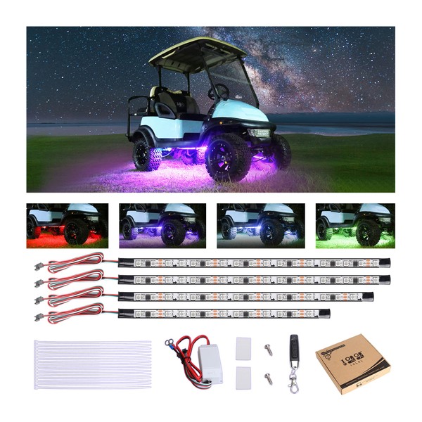 10L0L Golf Cart Underglow LED Light Strip Kit, 22 Modes Glow Neon Underbody Lighting with Wireless Remote Control, Sound Active, Water Resistant Flexible Tubes 4 Pack