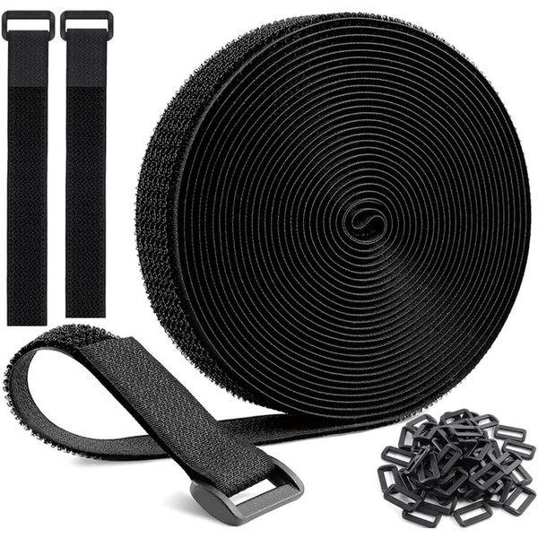 - 【Package Includes】Includes 1 roll of hook and loop cable straps and 50 black adjustable metal buckles. Nylon strap roll is 10 meters long and 2 cm wide. You can cut the straps to any length you need, making them reusable and eco-friendly, helping to reduce waste.
