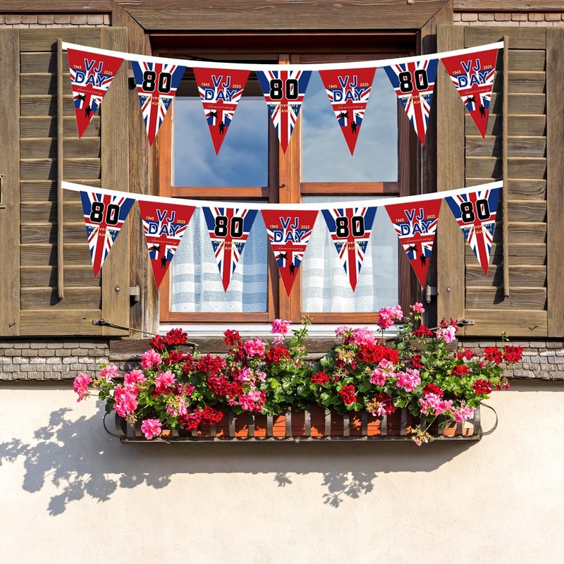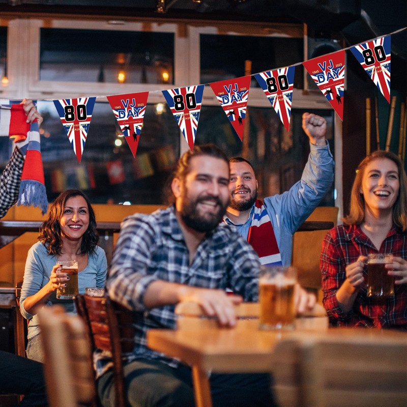 - VJ Day 80th Anniversary Flag 2025 Decorations:Celebrate history with our VJ Day 80th Anniversary Flag Bunting, a stunning decoration that honors 80 years of Victory over Japan Day, perfect for commemorating the 2025 celebrations,suitable for both indoor and outdoor settings, ensuring your celebration shines brightly wherever it takes place