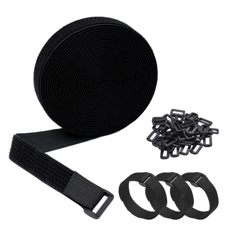- The packaging includes: 1 roll of 2cm x 10m velcro straps and 50 black adjustable buckles. You can freely cut the required length to minimize waste, without having to pay again for incorrect or extra sizes.