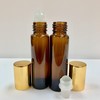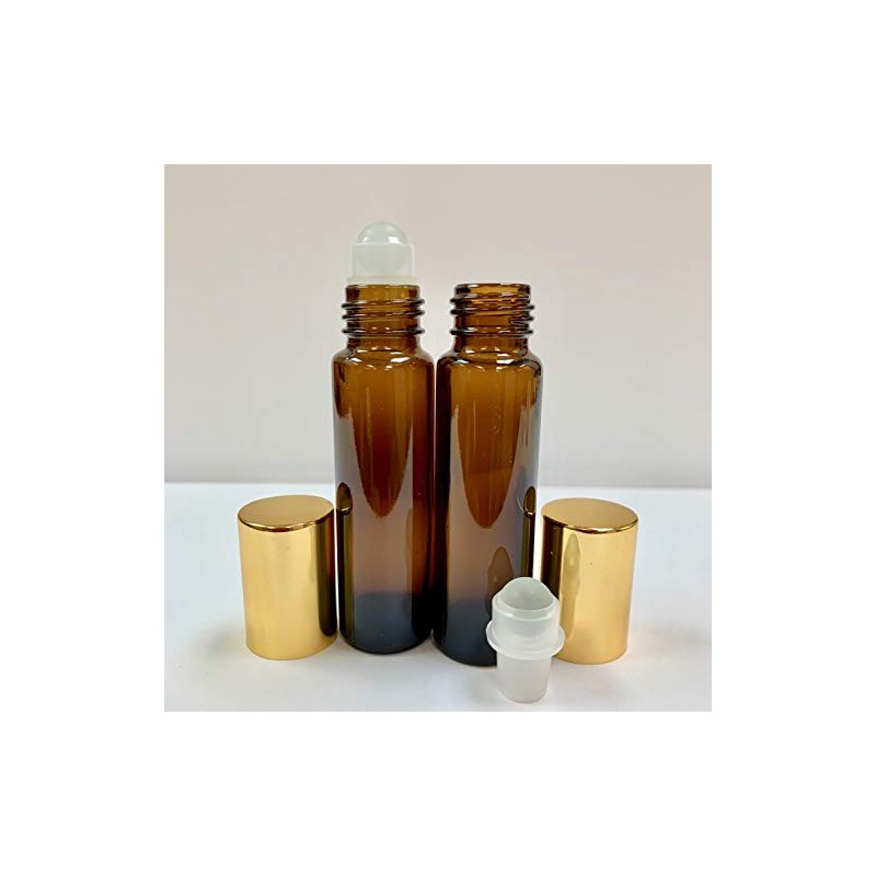 10ml [1/3 oz] EMPTY AMBER Glass Rollon Bottle with Plastic Roller & Aluminum Gold Caps [75 Pcs]