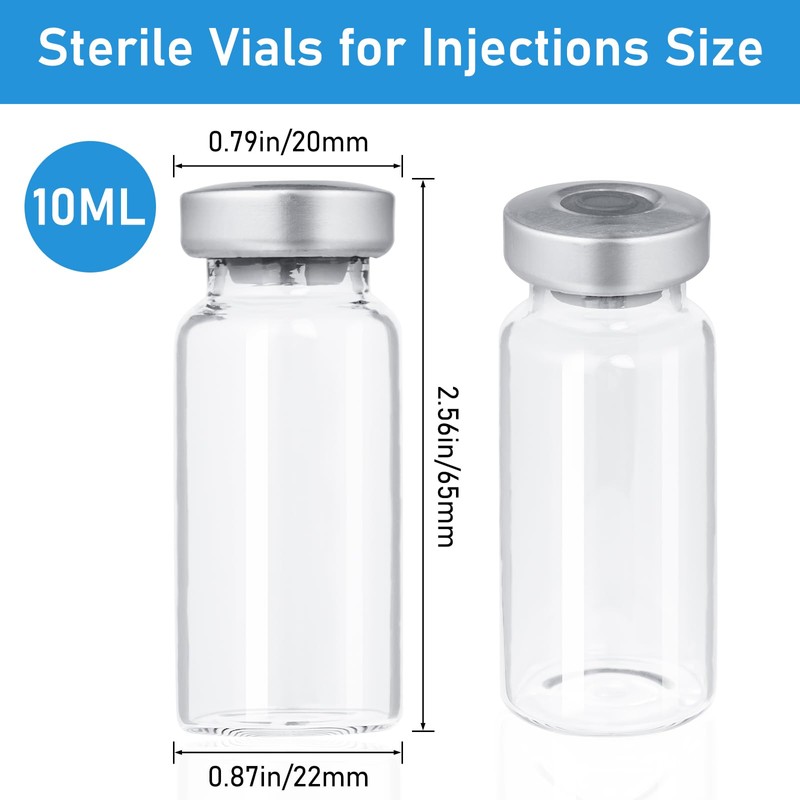10ml Glass Vials for Injection, with Self Healing Injection Port, Transparent Sealed, Empty Vials for Injection(10pcs, 10ml)