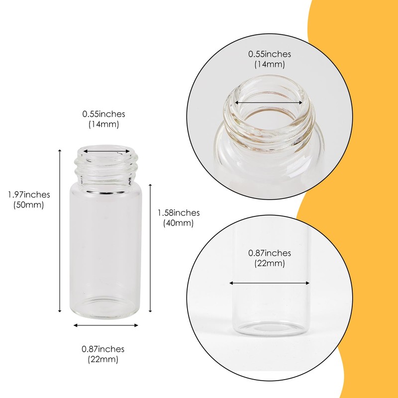 - ▶Dimension◀ Capacity: 10ml; Diameter: 0.87in(22mm); Height: 1.97in(50mm); Internal diameter: 0.55in(14mm).