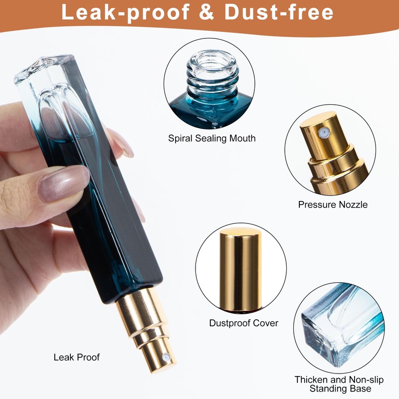 - CAPACITY: Set of 5 glass perfume travel refillable bottles, each empty bottle holds 10ML of liquid and features a fine-mist spray atomizer for precise application, easy to refill and no leakage
