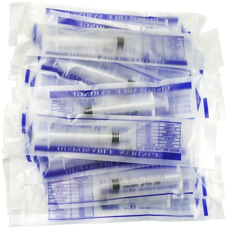 10cc syringes can be used for dispensing essential oils, perfumes, lubricants, sealants, painting, ink, or as a tool for feeding animals.