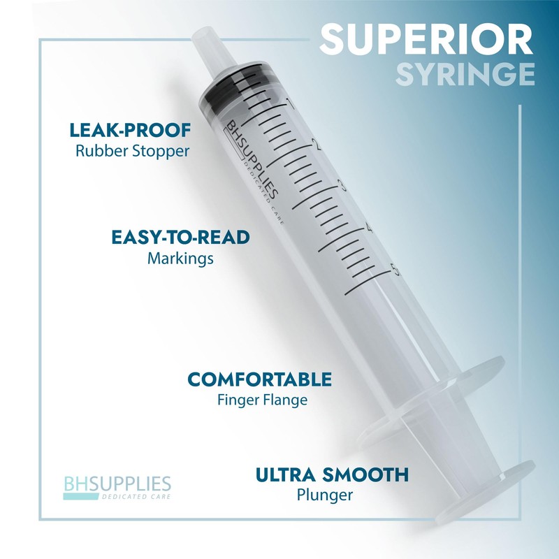 BH Supplies 10ml Luer Slip Tip Syringes (No Needle) - Sterile, Individually Wrapped - 100 Syringes