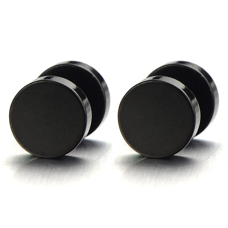 10MM Black Screw Stud Earrings for Mens Women Steel Cheater Fake Ear Plugs Gauges Illusion Tunnel