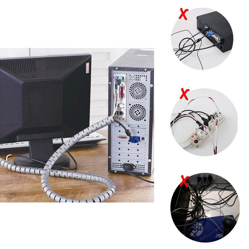 10mm Spiral Cable Tidy Wrap Management Storage Organizer 2M for TV Computer (White)