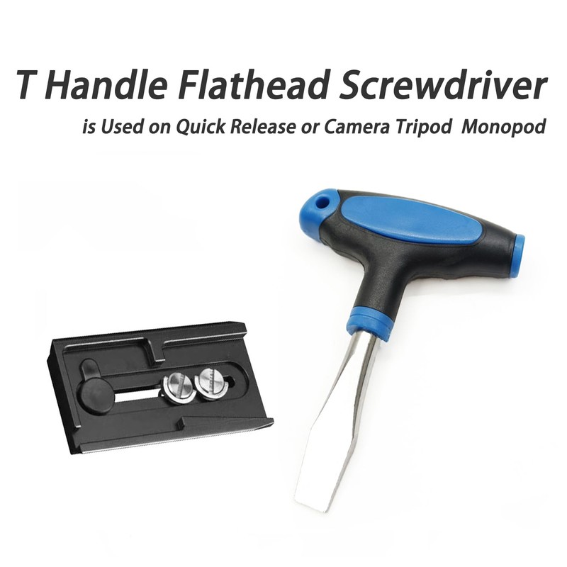 • Crafted with high-carbon steel, this T-handle flat head screwdriver ensures durability, corrosion resistance and optimal performance. The 10mm blade tip width is designed specifically for slotted screws used on quick release plates, camera tripods, and monopods