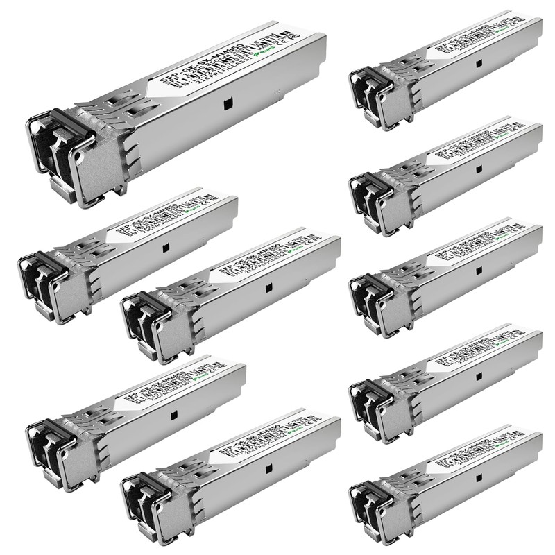 10Pack 1.25G SFP Module 1000Base-SX Multimode LC Transceiver, 850nm MMF, 550m Range - Compatible with Cisco SFP-GE-S, Meraki MA-SFP-1GB-SX, Ubiquiti UF-MM-1G, Mikrotik, TP-Link, Netgear,Aruba and more
