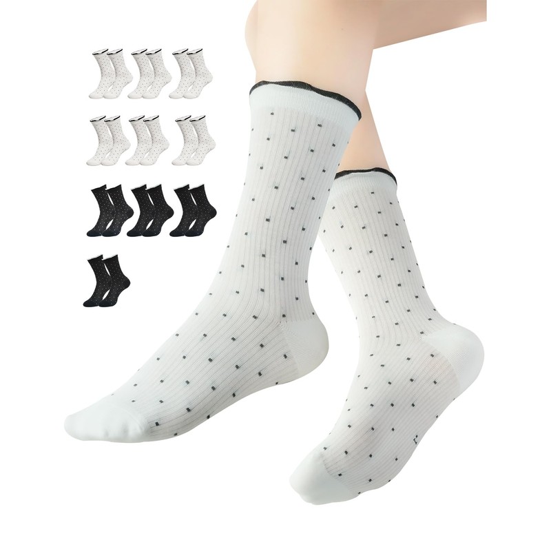 - STYLE: Classic mid-calf crew socks featuring an elegant polka dot pattern design in black and white colorways