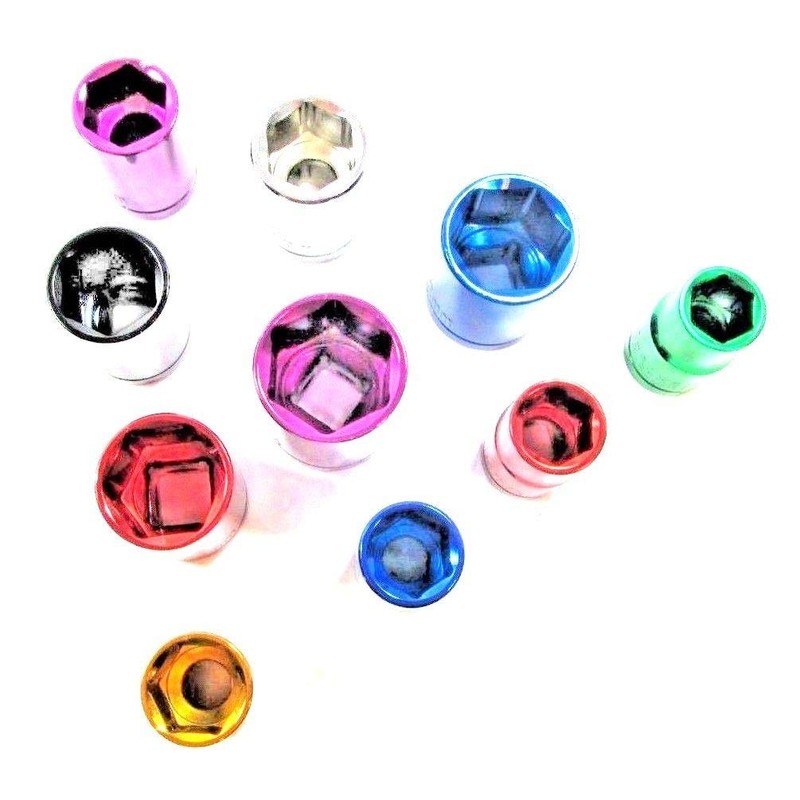 10Pc 1/2" Drive Shallow Coloured Sockets 13 14 15 16 17 18 19 21 22 24mm SS313