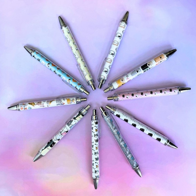 - Adorable Cat Designs: The Cat Wrap Pens 10PC set features a variety of cat-themed designs that wrap around the pen’s barrel. Each pen showcases charming and playful feline illustrations, making them the perfect choice for cat lovers looking to add personality to their stationery.