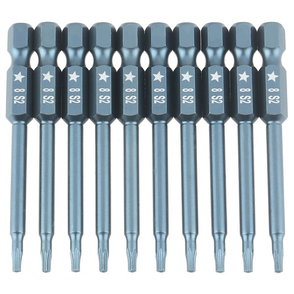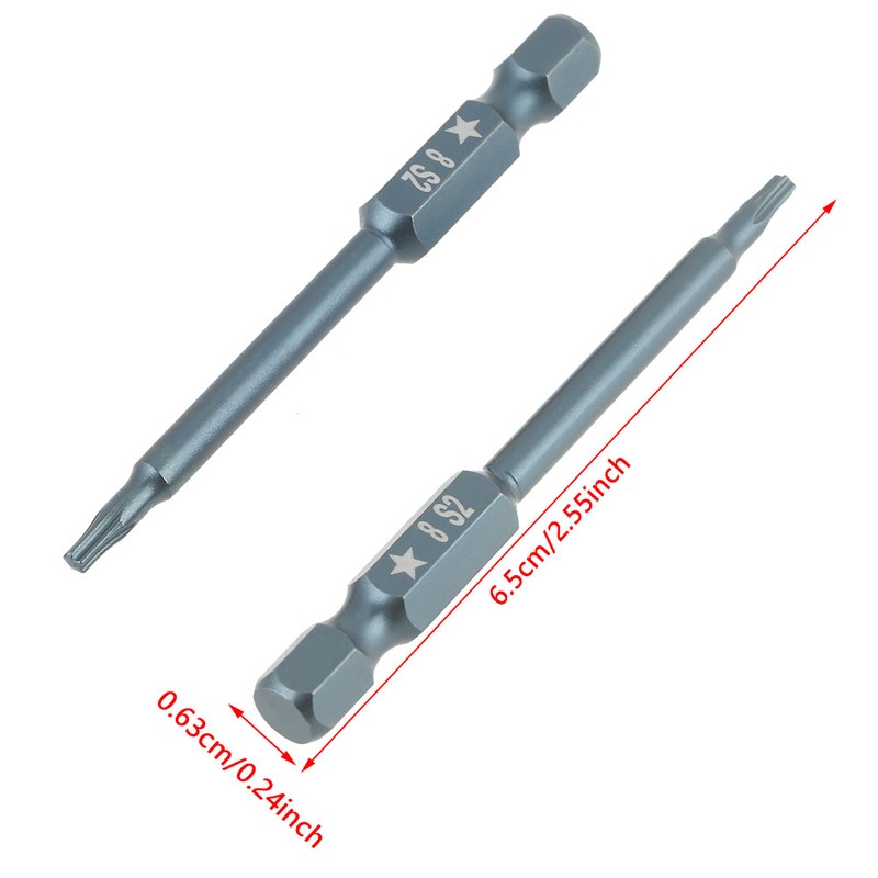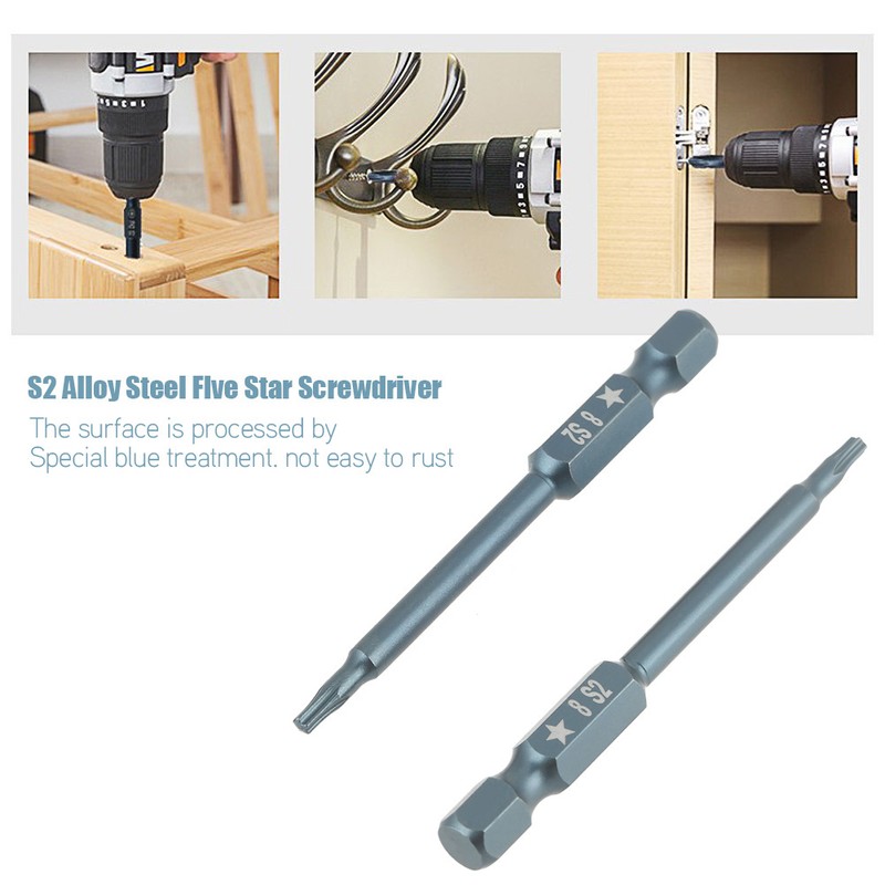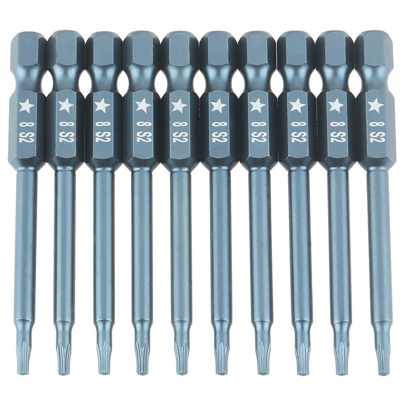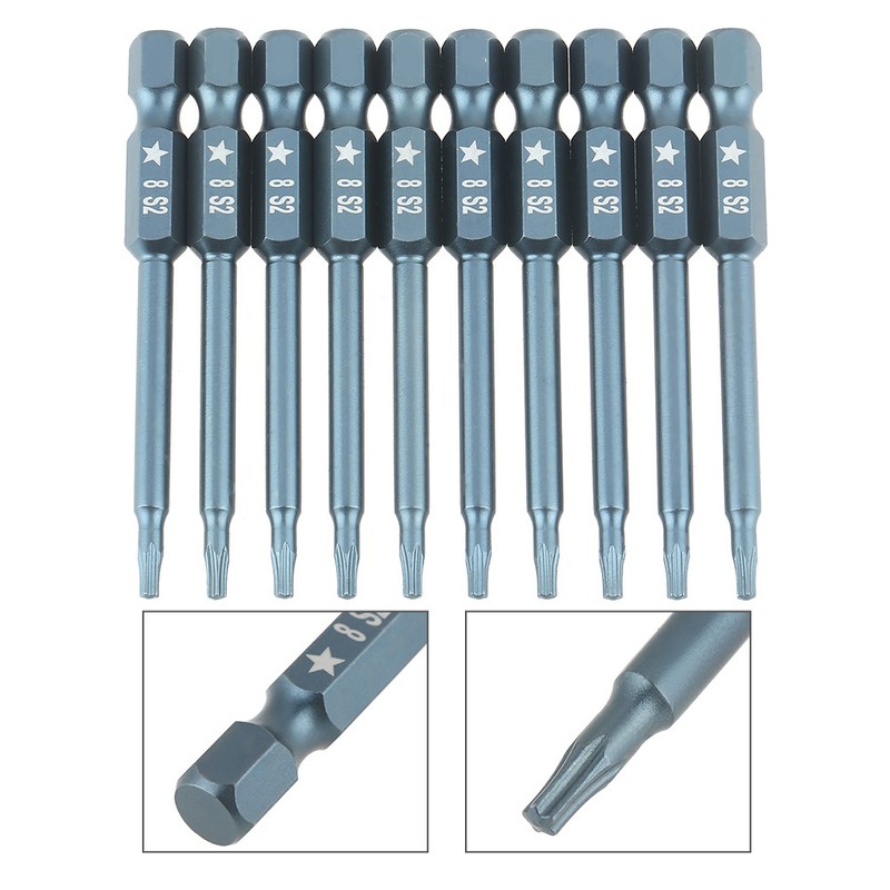 10pcs 1/4inch Hex Shank 65mm S2 Alloy Steel Five Star Screwdriver Bits Set H6.3*65*TS8