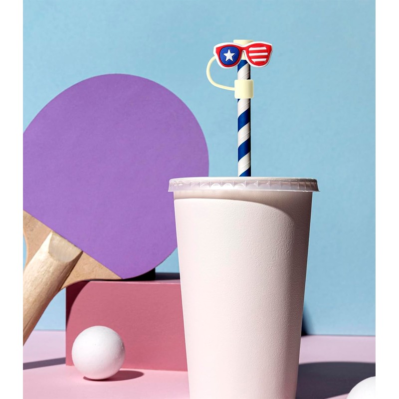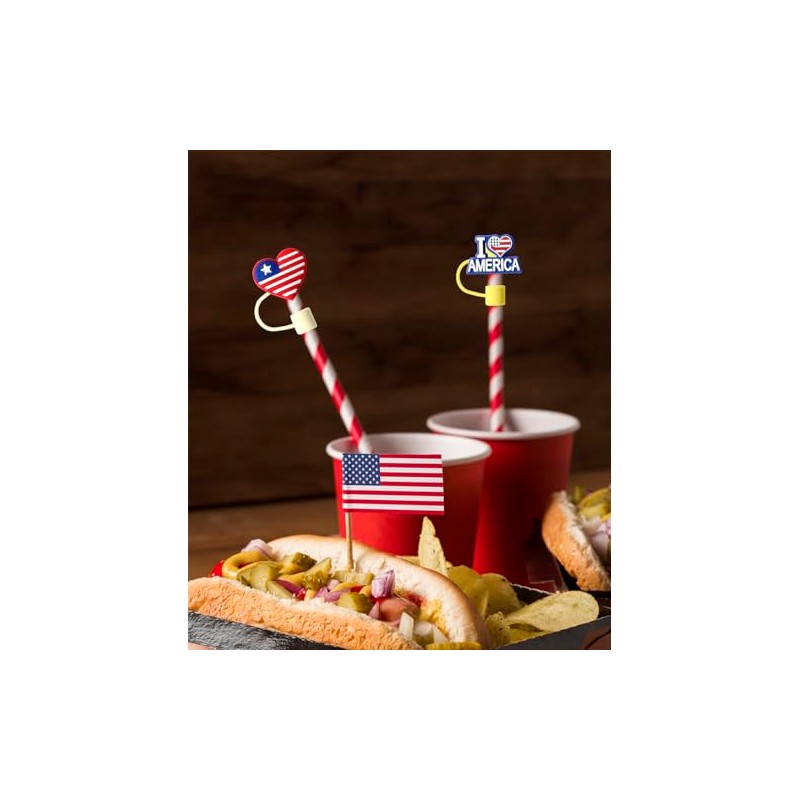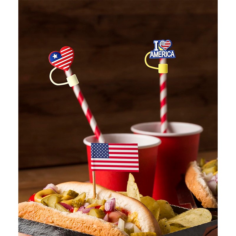 10PCS 4th of July Decorations Straw Cover Cap 10mm American Flag Silicone Straw Topper for Tumblers Dust-Proof Drinking Straw Reusable Straw Tip Cover