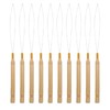 10PCS Bead Threader for Hair, Needle Threader with Wooden Handle, Hair Extension Loop Needle Threader,Pulling Hook Tool,Hair Tinsel Pull-Through Loop, Styling Tool for Hair Bead and Feather Extension