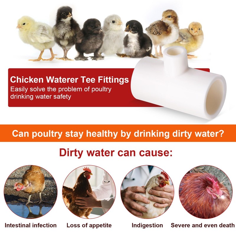 - Product List: You will receive 10 pieces of chicken waterer tee fittings. Sufficient quantity is perfect for use and replacement. Easy to install.
