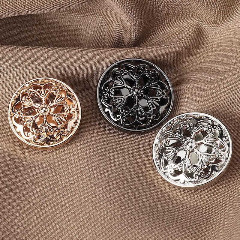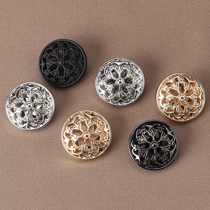 10PCS Clothes Button - Fashion Hollow Flower Metal Shank Round Shaped Metal B...