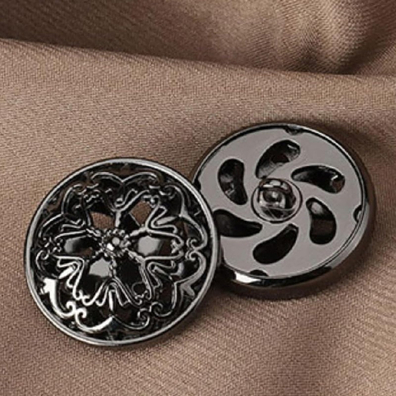 10PCS Clothes Button - Fashion Hollow Flower Metal Shank Round Shaped Metal Button Set Sewing Button/Black Buttons (25mm Black)