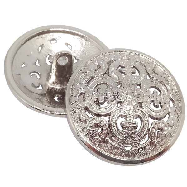 10pcs Clothes Button,Hollow Carved Metal Buttons,DIY Sewing Craft Discover Buttons,Engraving Openwork Metal Shank Buttons(25mm/1Inch,Silver White)