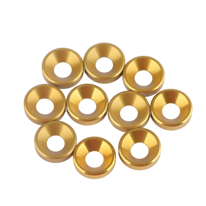 10pcs Countersunk Washers Aluminum Alloy Anodizing Flat Head Washer Seal M3 M4 (Yellow)