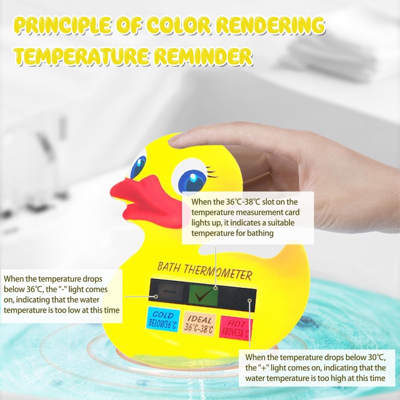 - Portable and Practical: The duck-shaped card's clear LCD screen displays the water temperature instantly. Even in dimly lit bathroom environments, parents can quickly and accurately read the water temperature values, saving time adjusting the water temperature and making bath preparation easier.