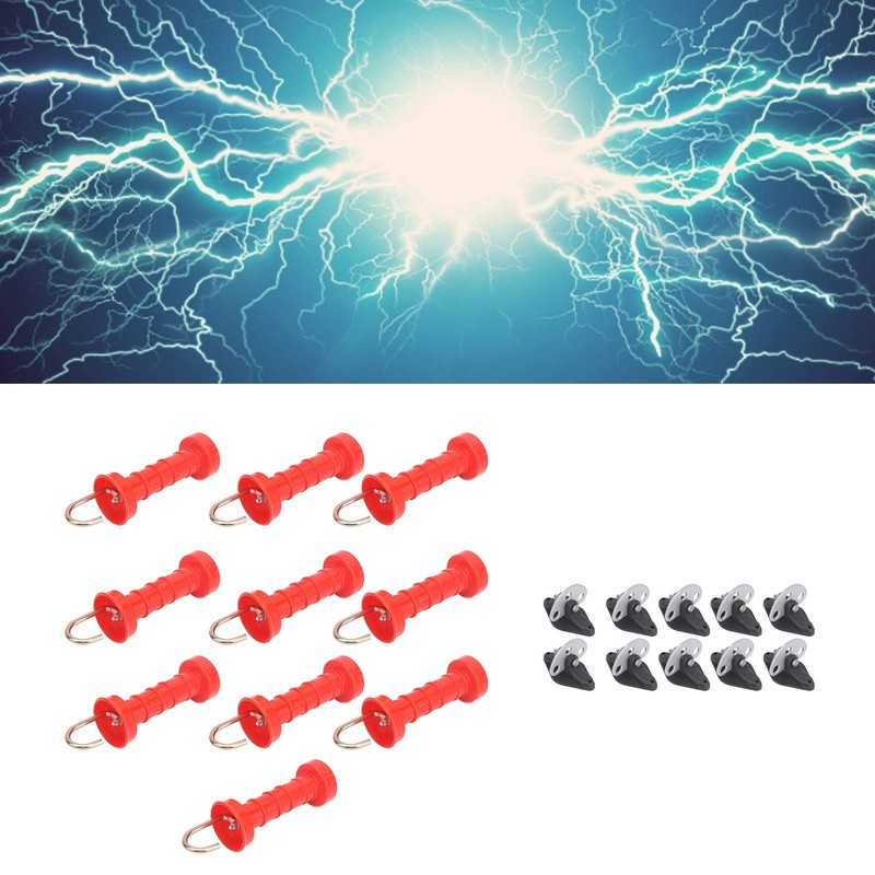 10Pcs Electric Fence Gate Handles, Farmily Plastic Red ABS Heat/Cold-Resistant Spring Gate Handles Agricultural Fencing Tools with 10Pcs Insulators