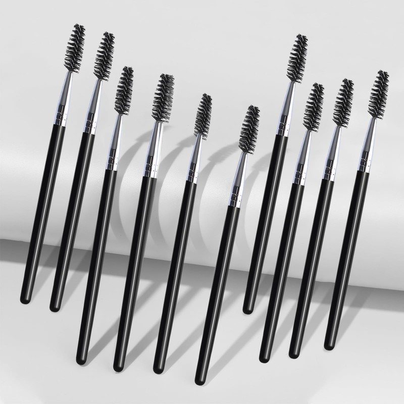 10Pcs Eyebrow Brush,Eyelash Spoolies,Bendable Brush Head for Natural Makeup (Black)