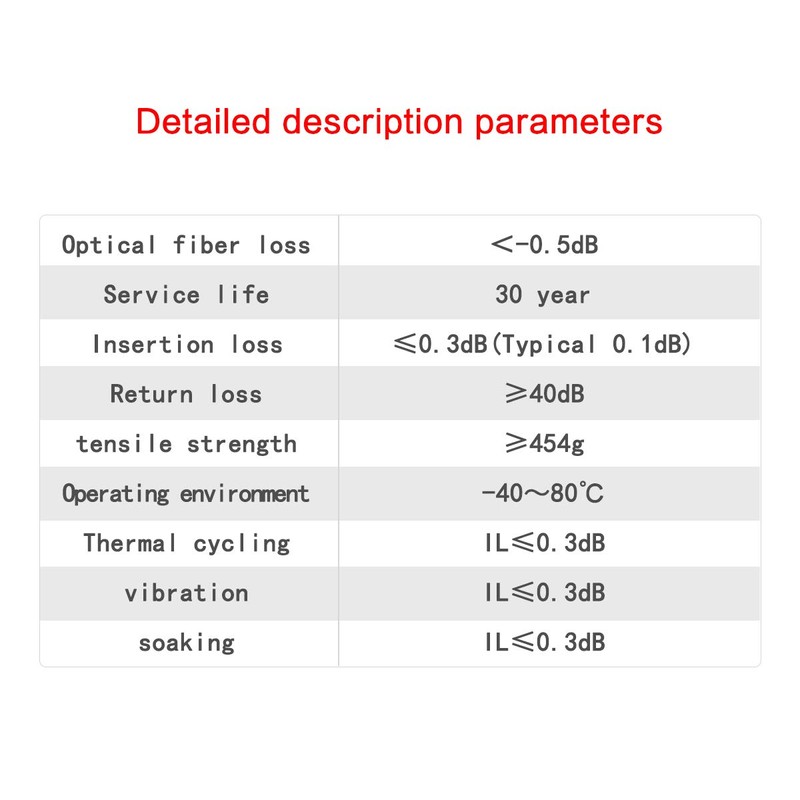 Use and characteristics: The optical fiber cold sub uses two pigtail when docking, its main parts inside is a precision V groove butt joint, use cold son to achieve two pigtail pigtail fiber aftertwo dial. He operate more simple and rapid than welding machine, welding time. Package include:10 x Fiber Optic Mechanical Splice connector About Service: If you have any questions about the product , please feel free to contact with us at any time, we'll provide our best service to you and do our best to resolve the problem you met.