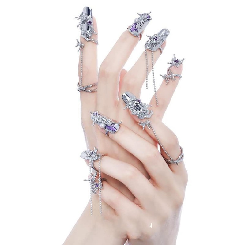 5 different rings in different shape: Each nail ring set have 5 different rings in different shape and size, They are adjustable to fit individual fingers. Unique, shiny rhinestone, it will make you be more charming and attractive.