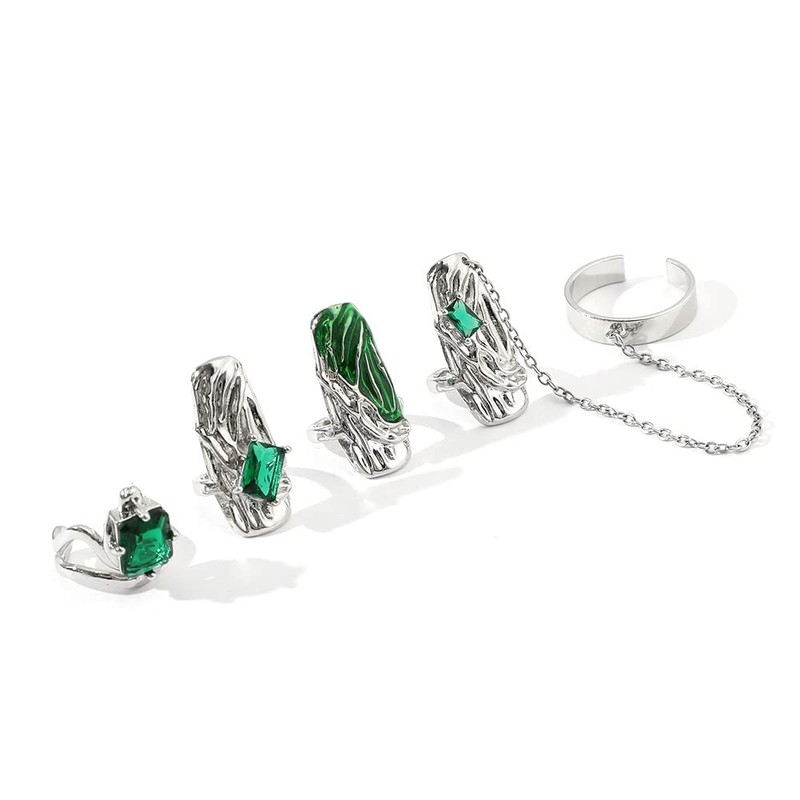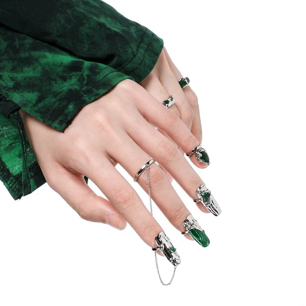 10Pcs Finger Tip Nail Rings for Women, Adjustable Opening Nail Art Charms Accessories, Finger Tip Ring Claw Rings Nail, Irregular Fingertip Nail Armor Ring Punk Jewelry Set (Green)