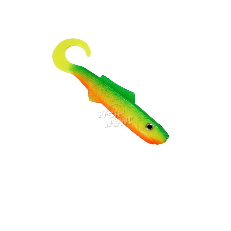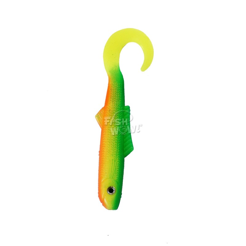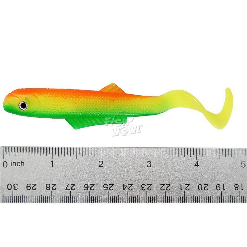 New in the pack. *Length: 4 inch. *Size with the tail extended: 5 inch. *High Quality Soft plastic body with eyes. *Their Curly tail swims perfectly at any speed. *Their fin provide a natural-looking. *Swims perfectly at any speed. *Good for freshwater and saltwater.